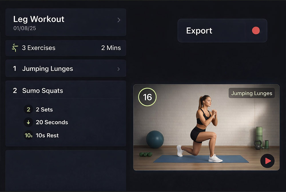 Download ready-to-share workout videos for social media or YouTube.